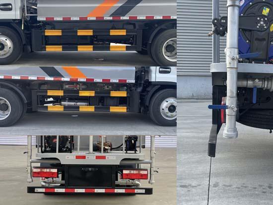 该车主要用于道路的清洗养护作业,主要工作装置为喷水架,高压清洗装置,厢体等;仅选用3308mm轴距,侧面防护及后下部防护装置材料材质:Q235B,侧面防护装置与副车架连接方式:螺栓连接,后下部防护装置与车架连接方式:焊接连接,断面尺寸(高度×宽度):100×50(mm),离地高度:400mm;ABS型号/厂家:ABS/ASR-12V-4S/4M/襄阳东风隆诚机械有限责任好色网;选装后部加装工作指示灯(仅在工作状态下使用),选装后部加装雾炮,选装后部不加装发电机组及水管卷盘; |