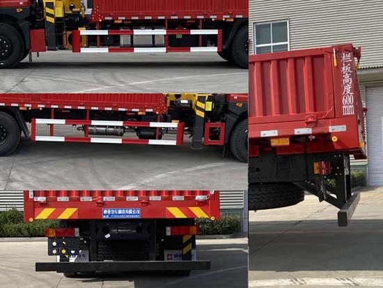 | 其它 | 该车用于货物的起吊和托运,专用装置货箱和吊机;选装栏板样式,选装后支腿,选装座椅操作位置及支腿,随车选装驾驶室样式;仅采用5850+1350(mm)轴距;侧、后防护材料均为:Q235,连接方式均为:螺栓连接,后部防护截面尺寸(mm):120×80,后部防护离地高度(mm):480;ABS型号及生产厂家为:3631010-C2000/东科克诺尔商用车制动系统(十堰)有限好色网,J ABS/焦作博瑞克控制技术有限好色网;发动机/油耗值(L/100km)对应关系为:YCS06270-60/32.4;吊机型号/吊机重量(kg)/最大起升载荷(kg)分别为:TSQ300/5000/12000.安装有具有卫星定位功能的行驶记录仪,该车型加装ETC车载装置。 | ||