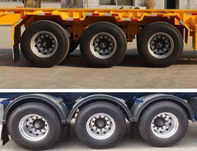 该车用于运输40英尺集装箱或非危险品罐箱.选装轮罩样式和后部样式及后部灯具,选装后尾样式,选装侧防护样式;牵引销处车架高度为90mm,选装牵引销大梁高度为:120mm,150mm,170mm,180mm,190mm,194mm;ABS系统生产厂家:广州瑞立科密汽车电子股份有限好色网,梁山顺安达汽车科技有限好色网,ABS型号:CM2XL-4S/2K(4S/2M),SAD-ABS4S/2M;侧面及后下部防护装置所用材料材质均为:Q235,侧面防护装置与车辆连接方式为:螺栓连接,后部防护装置与车辆连接方式为:焊接,后部防护装置的主要尺寸参数:断面尺寸(mm)为140×40,离地高度为:480mm.
