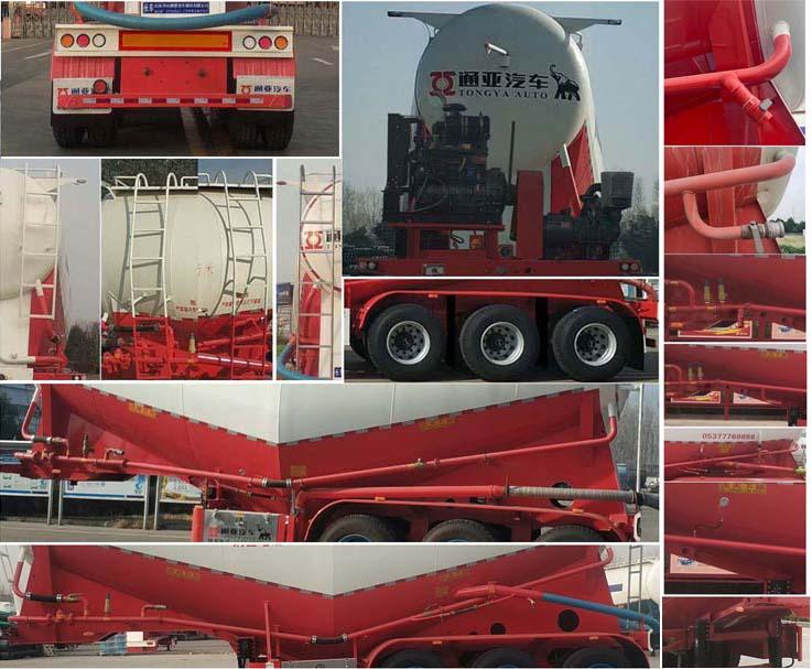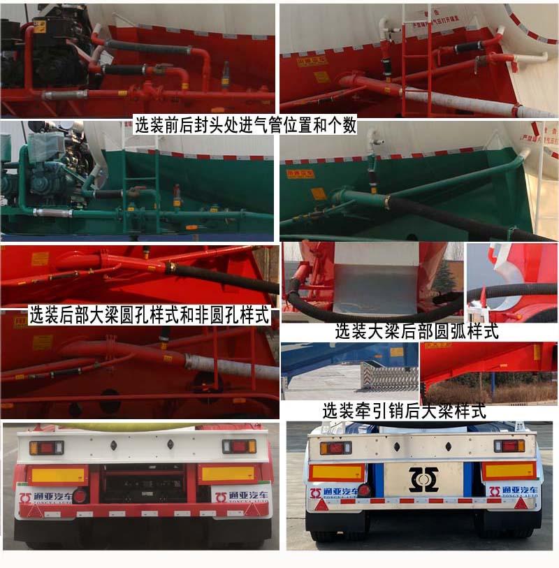 顶部封闭不可开槽,后部不可开启;罐体有效容积:29.3立方米,运输介质:干拌砂浆配料,密度:1170千克/立方米;当罐体外形尺寸罐体长(含封头)8540mm,最大截面处宽2550mm,最大截面处高3100mm,前后封头直径为1810mm(选装前后封头直径为1710mm),选装罐体外形尺寸罐体长(含封头)8050mm,最大截面处宽2550mm,最大截面处高3100mm,前后封头直径为1810mm(选装前后封头直径为1710mm);当轮胎型号为11R22.5 14PR时,轮胎中间加装雨帘;选装走台样式,选装后组合灯样式,选装车辆前部加装机组,选装爬梯安装位置及个数(一个/两个/三个),选装前后封头处进气管位置和个数,选装后部大梁圆孔样式和非圆孔样式,选装大梁后部圆弧样式,选装牵引销后大梁样式;ABS系统生产厂家:广州瑞立科密汽车电子股份有限好色网,梁山顺安达汽车科技有限好色网,广州市西合汽车电子装备有限好色网,型号:CM2XL-4S/2M,SAD-ABS4S/2M,XH-GQ4S2M-E01;侧面及后下部防护装置所用材料材质为:Q235,侧面及后下部防护装置与车辆连接方式均为:螺栓连接或焊接,后部防护装置的主要尺寸参数:断面尺寸(mm)为120×68,离地高度为:500mm;车长/牵引销到车辆最前端距离/轴距/后悬对应关系为:9500/1470/4560+1310+1310/850,8720/690/4560+1310+1310/850,9500/1310/4800+1310+1310/770,8720/530/4800+1310+1310/770,9050/1210/4370+1310+1310/850,8300/460/4370+1310+1310/850,9050/1290/4370+1310+1310/770,8300/540/4370+1310+1310/770.