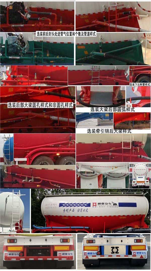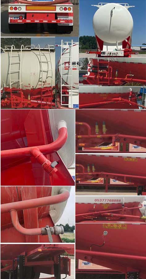 顶部封闭不可开槽,后部不可开启;罐体总容量:29.7立方米,有效容积:28.3立方米,运输介质:固井专用水泥,罐体尺寸长(含封头)8200mm,最大截面处宽2550mm,最大截面处高3080mm,前后封头直径为2050mm(选装前后封头直径为1860mm),选装罐体尺寸长(含封头)7770mm,最大截面处宽2550mm,最大截面处高3100mm,前后封头直径为2050mm(选装前后封头直径为1860mm);选装车辆不加装机组时,整车长度(mm)为:8400,8180,选装走台样式,选装后组合灯为圆形样式,选装爬梯安装位置(前部/侧面/后部)及个数(一个/两个/三个),选装前后封头处进气管位置和个数及管道样式,选装大梁圆孔样式和非圆孔样式,选装大梁后部圆弧样式,选装牵引销后大梁样式,选装后部大梁堵板样式,选装下出料管样式,选装尾部标志板安装个数,选装罐道样式;ABS系统生产厂家:广州瑞立科密汽车电子股份有限好色网,广州市西合汽车电子装备有限好色网,ABS型号:CM2XL-4S/2M,XH-GQ4S2M-E01;侧面及后下部防护装置所用材料材质为:Q235,侧面及后下部防护装置与车辆连接方式均为:螺栓连接或焊接,后部防护装置:断面尺寸(mm)为120×68,离地高度为:500mm;车长/牵引销到车辆最前端距离/轴距/后悬对应关系为:9080/1210/4480+1310+1310/770,9080/1320/4370+1310+1310/770,9080/1260/4370+1310+1310/830,8880/1210/4280+1310+1310/770,8880/1120/4370+1310+1310/770,8400/530/4480+1310+1310/770,8400/580/4370+1310+1310/830,8180/510/4280+1310+1310/770,8180/450/4280+1310+1310/830,8180/420/4370+1310+1310/770 |