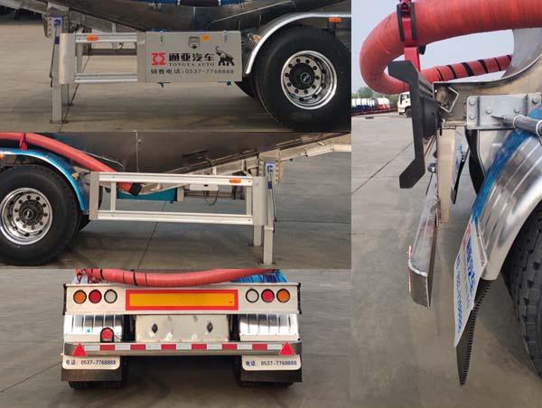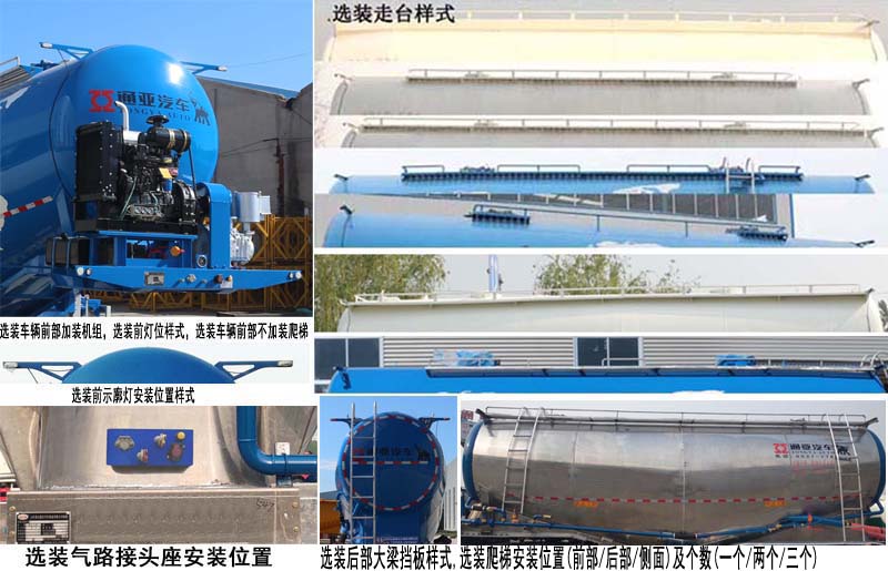 顶顶部封闭不可开槽,后部不可开启;罐体材质:铝合金,罐体总容量:30立方米,罐体有效容积:28.7立方米,运输介质:固井专用水泥,介质密度:1200千克/立方米;罐体外形尺寸罐体长(含封头)8540mm,最大截面处宽2550mm,最大截面处高3040mm,前后封头直径为2000mm(选装前后封头直径为1900mm),选装罐体长(含封头)为8050mm,最大截面处宽2550mm,最大截面处高3040mm,前后封头直径为2000mm(选装前后封头直径为1900mm);选装前部加装机组时整车长度(mm)为:9500,选装走台样式,选装前位灯样式,选装爬梯安装位置(前部/后部/侧面)及个数(一个/两个/三个),选装前示廓灯安装部件样式,选装气路接头座安装位置,选装后部大梁挡板样式,选装尾部标志板安装位置,选装号牌照板安装位置,选装前后封头处进气管位置和个数,选装后部大梁圆孔样式和非圆孔样式,选装大梁后部圆弧样式,选装牵引销后大梁样式;ABS系统生产厂家:广州瑞立科密汽车电子股份有限好色网,梁山顺安达汽车科技有限好色网,广州市西合汽车电子装备有限好色网,山东梁山德尔福汽车科技有限好色网,型号:CM2XL-4S/2M,SAD-ABS4S/2M,XH-GQ4S2M-E01,DEF-ABS4S/3M;侧面及后下部防护装置所用材料材质为:铝合金,侧面及后下部防护装置与车辆连接方式均为:螺栓连接,后部防护装置的主要尺寸参数:断面尺寸(mm)为120×68,离地高度为:500mm;车长/牵引销到车辆最前端距离/轴距/后悬对应关系为:9500/1230/4800+1310+1310/850,9500/1470/4560+1310+1310/850,8720/530/4800+1310+1310/770,8720/450/4800+1310+1310/850,8720/960/4370+1310+1310/770,8720/690/4560+1310+1310/850,8300/540/4370+1310+1310/770,8400/450/4560+1310+1310/770,8530/500/4560+1310+1310/850.