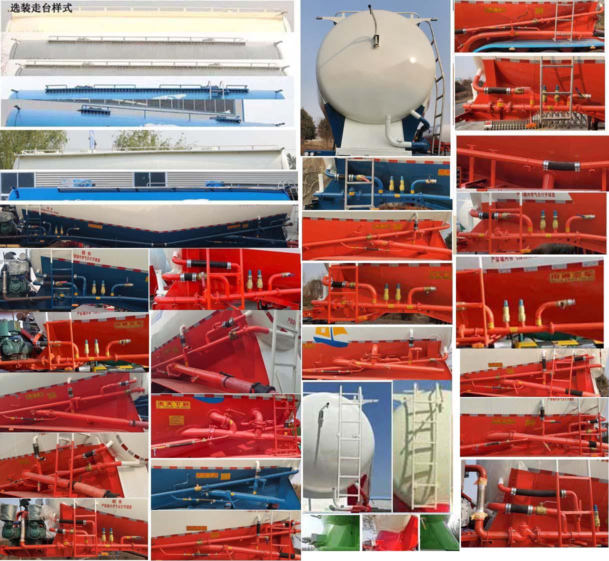 | 罐体总容量:44立方米,罐体有效容积:43立方米,运输介质:高炉渣;罐体外形尺寸罐体长(含封头)9620mm,最大截面处宽2550mm,最大截面处高3150mm,前后封头直径为2010mm(选装前后封头直径为1960mm),对应的整车长度(mm)为:10420,9700,选装罐体长(含封头)为9200mm,最大截面处宽2550mm,最大截面处高3150mm,前后封头直径为2010mm(选装前后封头直径为1960mm),对应的整车长度(mm)为:10000,9250;选装前部不加装机组时整车长度(mm)为:9700,9250;选装走台样式,选装后组合灯样式,选装后组合灯所在部件样式,选装尾部标志板安装位置,选装号牌板安装位置,选装前位灯前回复反射器安装位置及所在部件样式,选装前位灯样式,选装前后封头处进气管位置和个数,选装大梁圆孔样式和非圆孔样式,选装大梁后部圆弧样式,选装牵引销后大梁样式,选装下出料样式,选装爬梯安装位置(前部/侧面/后部),选装后尾小工具箱样式,选装侧面管道样式,选装双助吹样式,选装支腿连接件样式,选装外接气源样式,选装压力表安装位置,选装尾部标志板安装位置,选装号牌板安装位置;ABS系统生产厂家:广州瑞立科密汽车电子股份有限好色网,梁山顺安达汽车科技有限好色网,广州市西合汽车电子装备有限好色网,山东梁山德尔福汽车科技有限好色网,型号:CM2XL-4S/2M,SAD-ABS4S/2M,XH-GQ4S2M-E01,DEF-ABS4S/3M;侧面及后下部防护装置所用材料材质为:Q235,侧面及后下部防护装置与车辆连接方式均为:焊接或螺栓连接,后部防护装置的主要尺寸参数:断面尺寸(mm)为120×68,离地高度为:500mm,顶部封闭不可开槽,后部不可开启; | |||