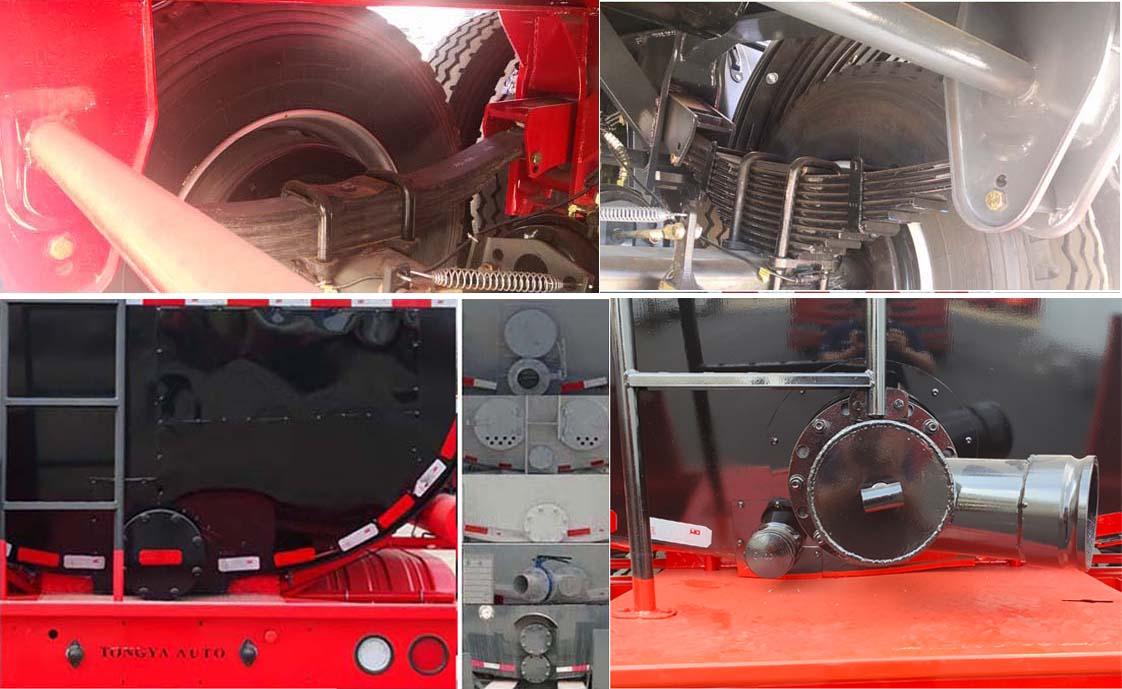 该车为非危化品运输车辆,不能运输危化品,罐体总容量:38.5立方米,罐体有效容积:37立方米;允许运输介质的最大密度为:850千克/立方米,保温层内部罐体外形尺寸为:长9700mm,宽2350mm,罐体为鹅颈式,前端高度:1950mm,后端高度:2150mm,保温层厚度为50mm时,罐体(含保温层)外形尺寸为:长9800mm,宽2450mm,罐体为鹅颈式,前端高度:2050mm,后端高度:2250mm,选装保温层厚度为80mm时,罐体(含保温层)外形尺寸为:长9860mm,宽2510mm,罐体为鹅颈式,前端高度:2110mm,后端高度:2310mm,选装保温层厚度为100mm时,罐体(含保温层)外形尺寸为:长9900mm,宽2550mm,罐体为鹅颈式,前端高度:2150mm,后端高度:2350mm;盘式制动/空气悬架时加装EBS,EBS系统生产厂家:广州瑞立科密汽车电子股份有限好色网;EBS型号:CM-TEBS;选装鼓式制动/钢板弹簧悬架时加装ABS,ABS系统生产厂家:广州瑞立科密汽车电子股份有限好色网,广州市西合汽车电子装备有限好色网,山东梁山德尔福汽车科技有限好色网,ABS型号:CM2XL-4S/2M,XH-GQ4S2M-E01,DEF-ABS4S/3M;侧面及后下部防护装置所用材料材质均为:Q235,侧面及后下部防护装置与车辆连接方式均为:螺栓连接,后部防护装置的主要尺寸参数:断面尺寸(mm)为120×68,离地高度为:500mm.悬架型式为非独立空气悬架或非独立钢板弹簧悬架;选装加热炉装置,选装尾部阀门及样式,选装丝杠阀,选装无加热炉装置,选装走台样式,选装爬梯样式及位置,选装装卸管样式,选装绑带样式,选装外观样式,选装罐顶护栏,走台样式数量及位置,选装爬梯样式,选装侧面不加装装饰管,选装阀门箱及个数(一个或两个),选装后部样式..