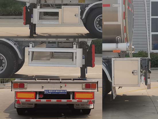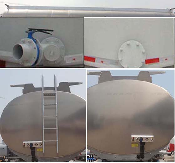 该车为非危化品运输车辆,罐体及车架均为铝合金材质,罐体总容量:37.8立方米,罐体有效容积:36立方米;允许运输介质的最大密度为:950千克/立方米,罐体外形尺寸(含封头)为:长9900mm,宽2480mm,罐体为鹅颈式,前端高度:1820mm,后端高度:2000mm;选装走台样式,选装尾部阀门,选装前爬梯,选装接头护罩位置;ABS系统生产厂家:广州瑞立科密汽车电子股份有限好色网,广州市西合汽车电子装备有限好色网,山东梁山德尔福汽车科技有限好色网,ABS型号:CM2XL-4S/2M,XH-GQ4S2M-E01,DEF-ABS4S/3M;侧面及后下部防护装置所用材料材质均为:铝合金,侧面及后下部防护装置与车辆连接方式均为:螺栓连接,后部防护装置的主要尺寸参数:断面尺寸(mm)为120×68,离地高度为:500mm.