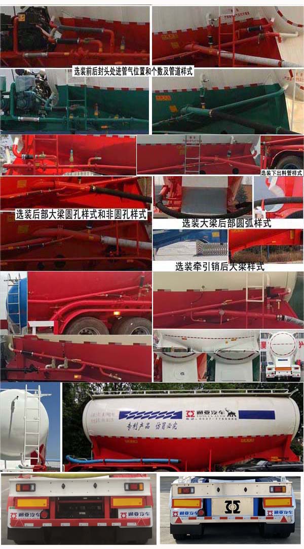| 顶部封闭不可开槽,后部不可开启;罐体总容量:50立方米,罐体有效容积:48立方米;当罐体外形尺寸罐体长(含封头)10600mm,最大截面处宽2550mm,最大截面处高3350mm,前后封头直径为2010mm(选装前后封头直径为1960mm),选装罐体外形尺寸罐体长(含封头)10350mm,最大截面处宽2550mm,最大截面处高3350mm,前后封头直径为2010mm(选装前后封头直径为1960mm);当轮胎型号为11R22.5 14PR时,轮胎中间加装雨帘;选装走台样式,选装后组合灯样式,选装车辆前部加装机组,选装爬梯安装位置及个数(一个/两个/三个),选装前后封头处进气管位置和个数,选装后部大梁圆孔样式和非圆孔样式,选装大梁后部圆弧样式,选装牵引销后大梁样式,选装后部大梁堵板样式,选装下出料样式,选装后尾小工具箱样式,选装侧面管道样式,选装机组样式,选装部件位置因为制造误差可有小变化,选装尾部标志板安装位置,选装号牌板安装位置;ABS系统生产厂家:广州瑞立科密汽车电子股份有限好色网,梁山顺安达汽车科技有限好色网,广州市西合汽车电子装备有限好色网,山东梁山德尔福汽车科技有限好色网,型号:CM2XL-4S/2M,SAD-ABS4S/2M,XH-GQ4S2M-E01,DEF-ABS4S/3M;侧面及后下部防护装置所用材料材质为:Q235,侧面及后下部防护装置与车辆连接方式均为:螺栓连接或焊接,后部防护装置的主要尺寸参数:断面尺寸(mm)为120×68,离地高度为:500mm;车长/牵引销到车辆最前端距离/轴距/后悬对应关系为:11400/1250/6650+1310+1310/880,11400/1350/6550+1310+1310/880,11150/1100/6550+1310+1310/880,11150/1300/6350+1310+1310/880,10600/450/6650+1310+1310/880,10600/550/6550+1310+1310/880,10500/450/6550+1310+1310/880,10500/650/6350+1310+1310/880,11400/1300/6650+1310+1310/830,11400/1400/6550+1310+1310/830,11150/1150/6550+1310+1310/830,11150/1350/6350+1310+1310/830,10600/500/6650+1310+1310/830,10600/600/6550+1310+1310/830,10500/500/6550+1310+1310/830,10500/700/6350+1310+1310/830. | |||
