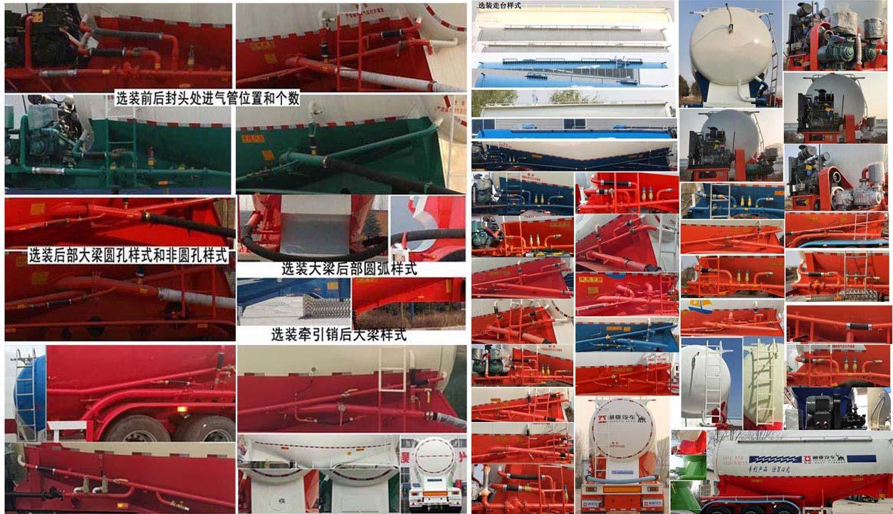 | 其它 | 罐体总容量为:40立方米,罐体有效容积:38.2立方米,运输介质:粉煤灰,介质堆密度:830千克/立方米,罐体尺寸(不含封头)长:8750mm,最大截面高度:3180mm,最大宽度:2490mm,选装车辆前部不加装机组,不带机组时外形尺寸为(mm):9700×2500×3990,选装双助吹样式,选装支腿连接件样式,选装外接气源样式,选装压力表安装位置,选装大梁后部可以为弧形,选装爬梯的安装位置可以在罐体左侧前部或后部或罐体后部,爬梯个数可以为一个或两个或三个,选装轮罩样式及铝合金轮毂,选装走台样式,选装罐顶升降护栏,顶部可为挡水槽式也可为走台式,选装前后封头处进气管位置和个数,工具箱位置可选装,选装罐盖个数及位置,选装罐体罐道的样式,选装大梁可以为钻孔样式,选装轮罩样式,选装前后封头处进气管位置和个数,选装大梁圆孔样式和非圆孔样式,选装大梁后部圆弧样式,选装牵引销后大梁样式,选装下出料样式,选装后尾小工具箱样式,选装侧面管道样式,选装机组样式,选装部件位置因为制造误差可有小变化;车长为10420mm时,轴距为;5550+1310+1310,5730+1310+1310,前悬/后悬:-/820;车长为9700mm时,轴距为;5550+1310+1310,5730+1310+1310,前悬/后悬:-/820;ABS系统生产厂家:威伯科汽车控制系统(中国)有限好色网,广州瑞立科密汽车电子股份有限好色网,梁山顺安达汽车科技有限好色网,山东梁山德尔福汽车科技有限好色网,型号:4005000810 4S2M,CM2XL-4S/2K(4S/2M),SAD-ABS4S/2M,DEF-ABS4S/3M;侧面及后下部防护装置所用材料材质为:Q235,侧面及后下部防护装置与车辆连接方式均为:螺栓连接或焊接,后部防护装置的主要尺寸参数:断面尺寸(mm)为120×68,离地高度为:500mm.顶部封闭不可开槽,后部不可开启,选装罐体样式可以为双仓或单仓,选装灯具型号及后组合灯所在部件的样式,选装后部大梁可以为弧形,选装尾部标志板安装位置,选装号牌板安装位置. | ||