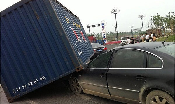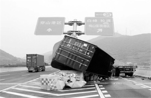 2、2016年7月15日,上海一辆往市区方向行驶的集卡冲过中央护栏撞向往金山卫方向行驶的一辆轿车,因为用于固定集装箱和卡车的锁扣没有锁上,集装箱体掉落在S4市区方向主线上,造成双向拥堵长达两公里。