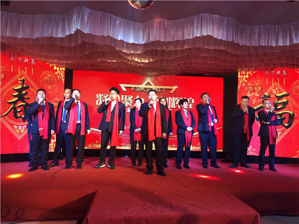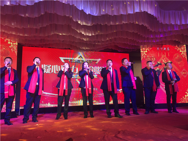 年会的开场由董事长杨奉钦先生和他的管理团队为大家献上了一曲(众人划桨开大船)。