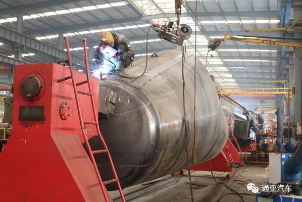 一眼望不到头的车间里放着密密麻麻等待焊接的罐体。