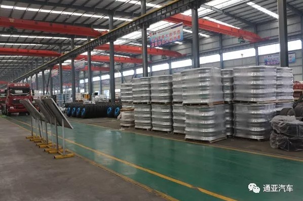 车间里存放了好多新轮胎、新轮毂,为了满足客户所定的订单又来了两大车。